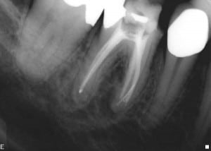 שאלה: אולי זה לא מקובל אבל אני מרשה לעצמי לבקש את חוות דעתך על שן 46 של הגב' הצעירה (גילה 36). טיפול השרש נעשה על ידי בכמה ישיבות עקב "הצלחתי" לשבור הדסטרום בתעלה מזיולינגואל. לא הצלחתי להוציא את החלק השבור, אך לדעתי עקפתי אותו והגעתי למלוי סביר. בתעלות הדיסטאליות המתחברות יצא מעט קצר. השן אינה סיפטומאטית כלל, עברה הורדה מגובה ונמצאת מאז במעקב סדיר עם סתימה זמנית. הייתי שמח לקבל ממך יעוץ לגבי דעתך על 46. אם אינך חושב שאתה מעוניין לתת לי חוות דעת בלי לראות את המתרפאה, גם זה בסדר מצידי. תודה